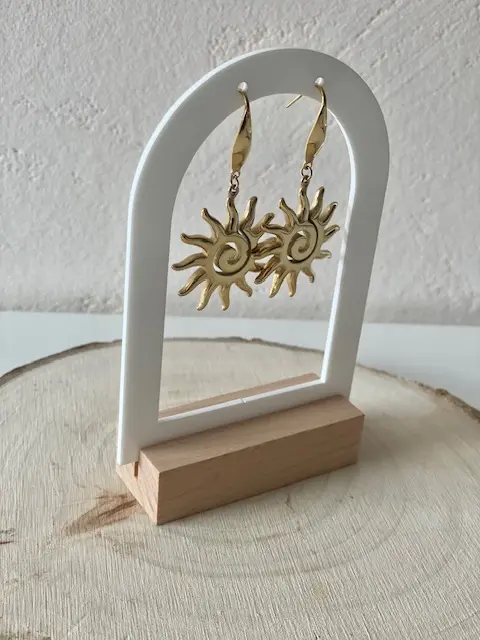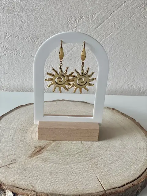 Le motif en forme de soleil apporte une touche lumineuse et chic à votre tenue. Ce design fluide et élégant s’inscrit parfaitement dans les tendances actuelles de bijoux minimalistes et raffinés. Que vous les portiez avec une robe fluide pour un look bohème ou avec un ensemble casual chic, ces boucles d’oreilles ajoutent une note de raffinement.