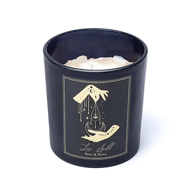Bougie de manifestation brillante en verre, coulée à la main à partir de cire de soja et de palme sans toxines. Aux huiles essentielles et pierres précieuses. Lorsque la bougie brûle, les pierres précieuses coulent avec la cire. Lorsque la bougie est terminée, vous pouvez conserver les pierres précieuses.