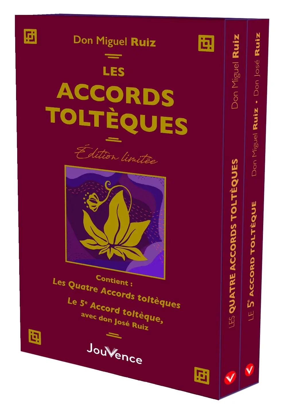 Enfin réunis dans un coffret inédit : Les quatre accords toltèques et le 5e Accord toltèque, deux incontournables de Don Miguel Ruiz !
