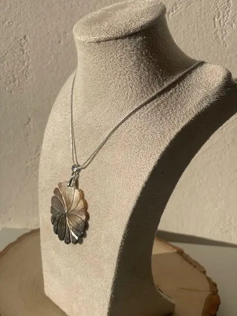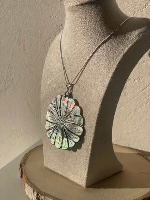 Chaque pièce en nacre noire naturelle est unique. Les légères variations de teinte, nuances de gris, de vert ou de bleu sous la surface sombre, sont la signature d’un matériau vivant. En portant ce pendentif, vous portez un bijou qui n’existe qu’en un seul exemplaire.